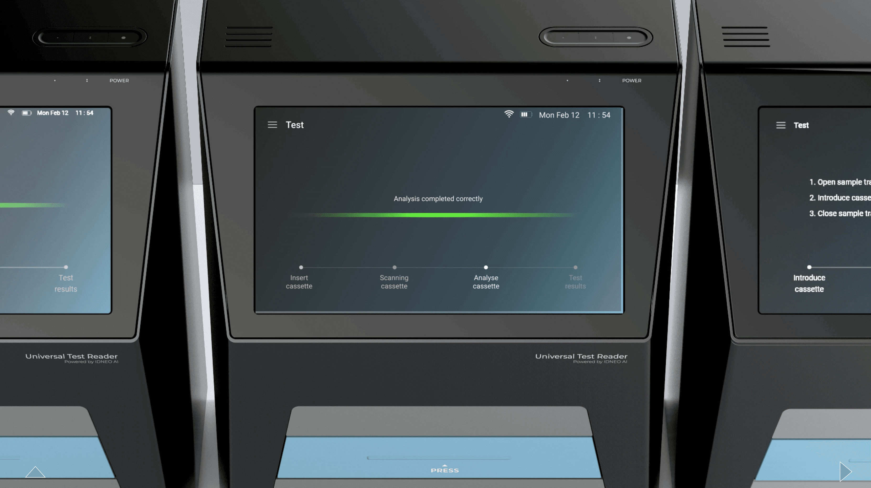 The challenge extended beyond the product itself, requiring a seamless integration between physical design and UX/UI. Every interaction, from placing the test to reading the result, had to feel intuitive, guided, and error-free. The hardware defines the gesture. The interface gives it meaning. Together, they create a unified experience where form, interaction, and information work as a single system ensuring clarity, trust, and efficiency in critical moments.